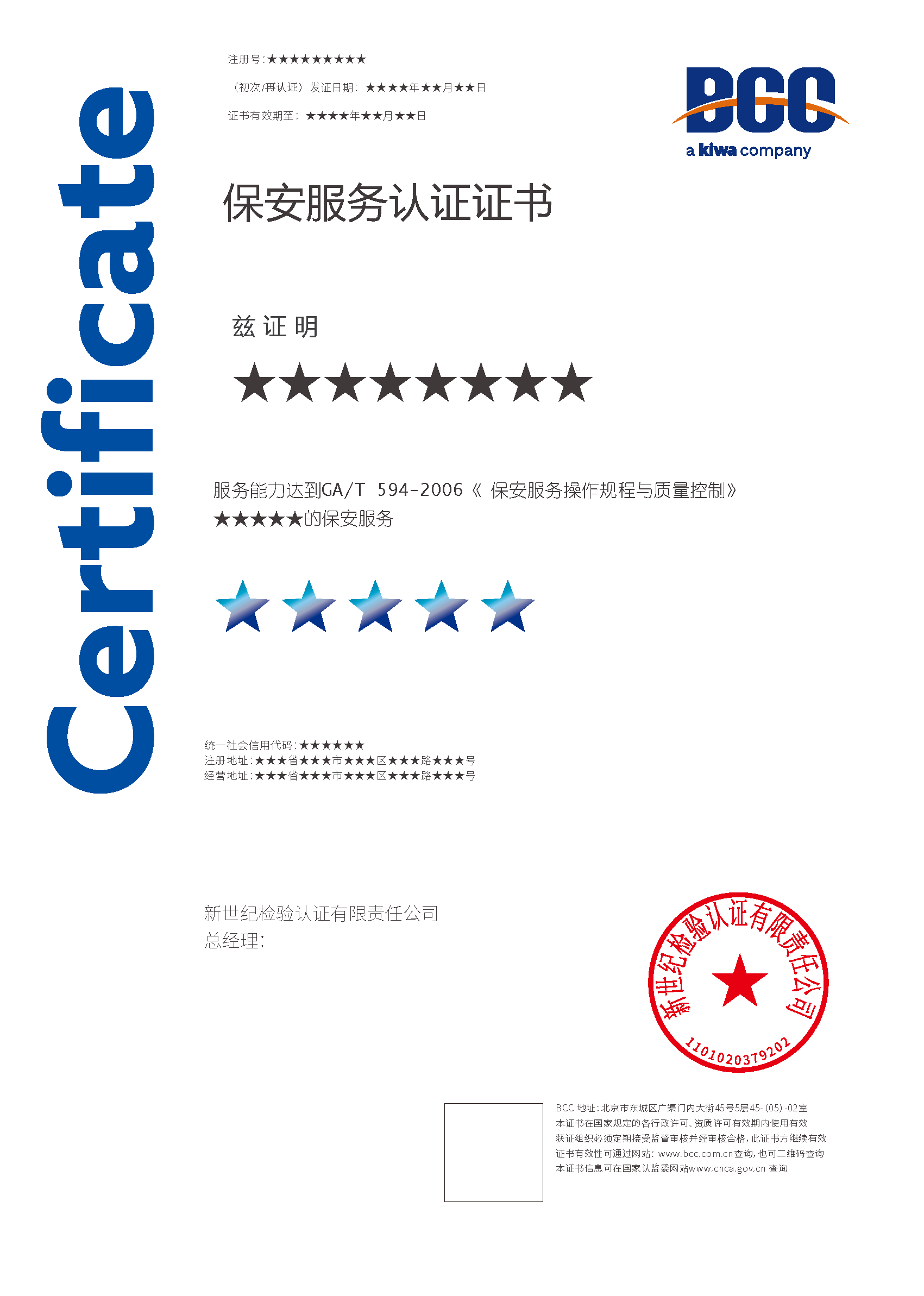 保安服務(wù)認證證書的有效期為三年,BCC每年會對獲證組織進行必要的監(jiān)督審查,證書到期前會進行再認證審查。