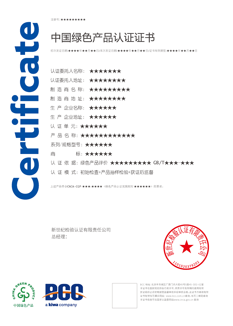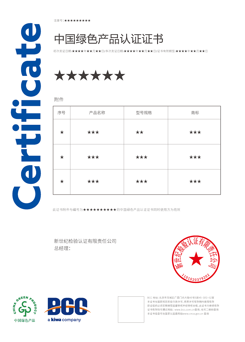 目前,BCC已順利通過國家認(rèn)證認(rèn)可監(jiān)督管理委員會(huì)(CNCA)審批,獲得了多項(xiàng)綠色產(chǎn)品認(rèn)證資質(zhì),包括: