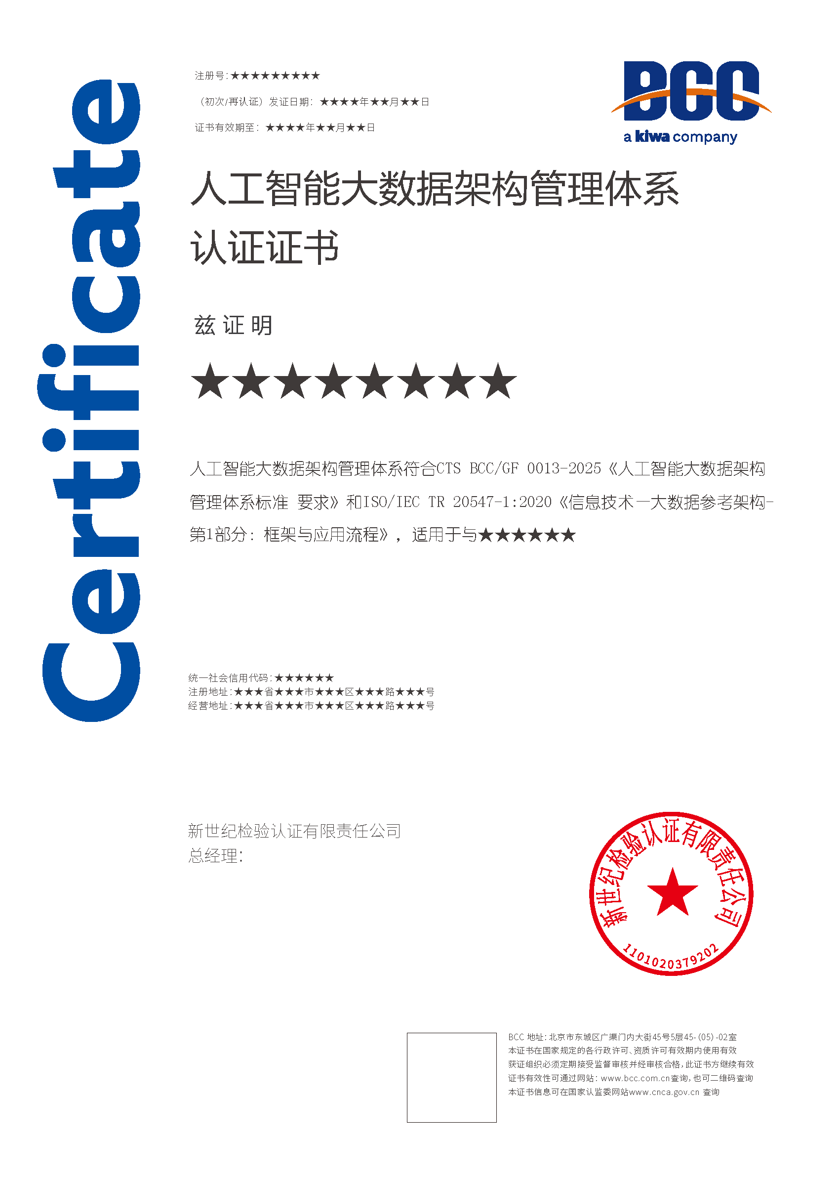 本頁涉及的認證服務中均有對應的《認證實施規(guī)則》,BCC擁有其最終解釋權。任何組織及個人未經BCC許可,不得以任何形式全部或部分使用(法律要求除外)認證相關信息。如需獲取相關實施規(guī)則請用以下方式聯(lián)系獲取:電話:010-58579316 郵箱:fwjs@kiwa.cn