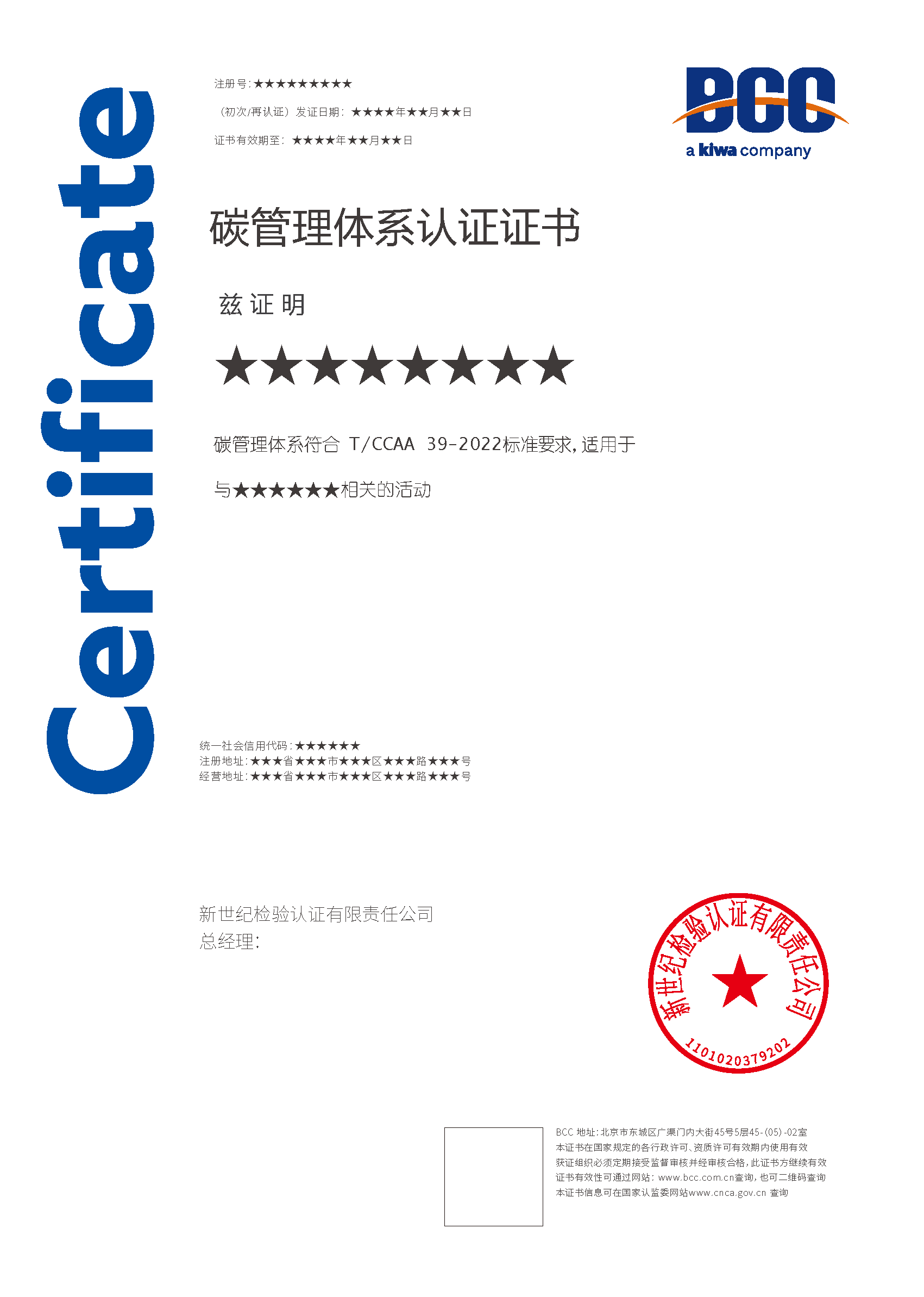 碳管理體系依據(jù)T/CCAA 39-2022 《碳管理體系要求》標準,用于管理碳源、行合規(guī)義務,并應對風險和機遇。