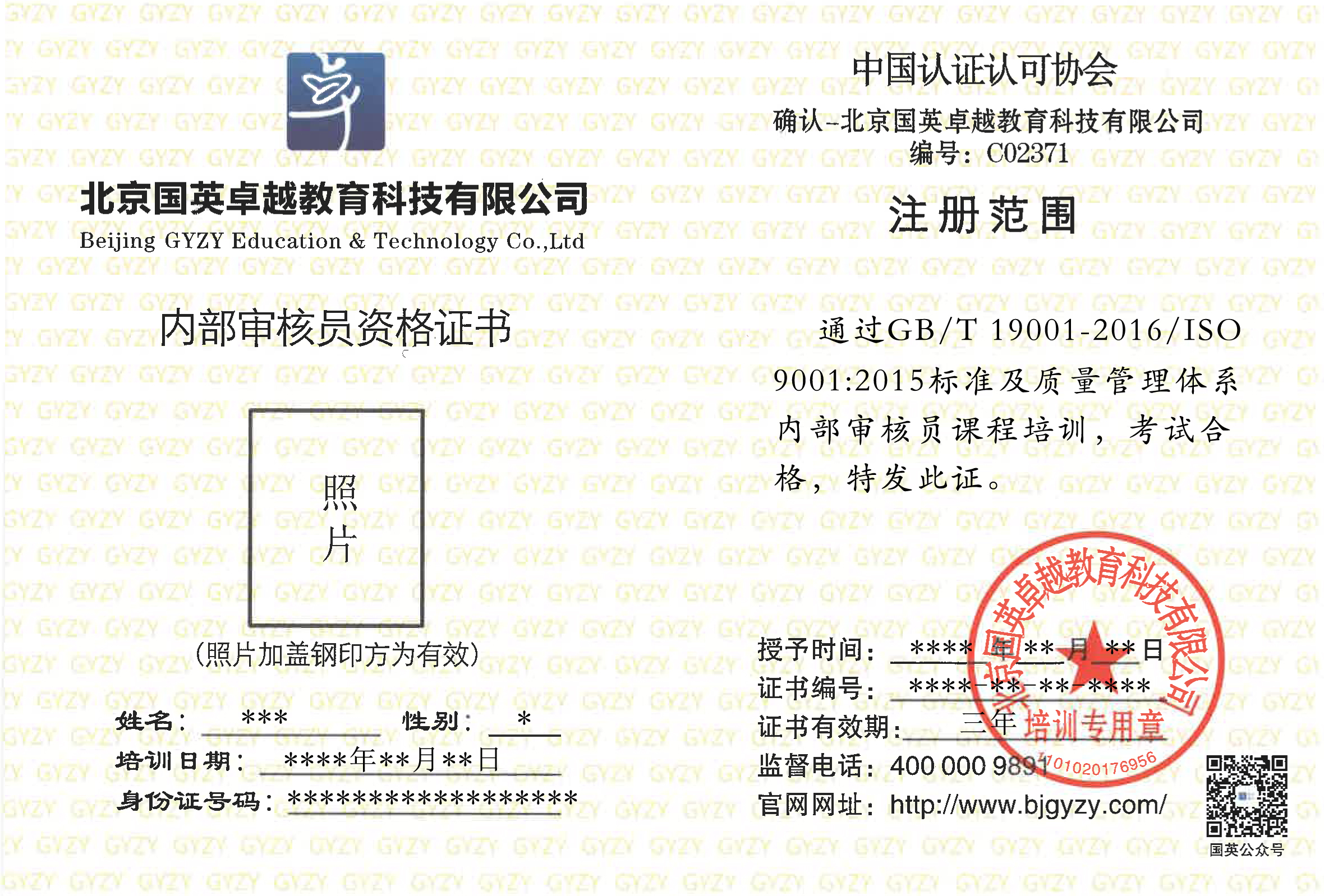 內(nèi)審員證書(shū) 外審員證書(shū)