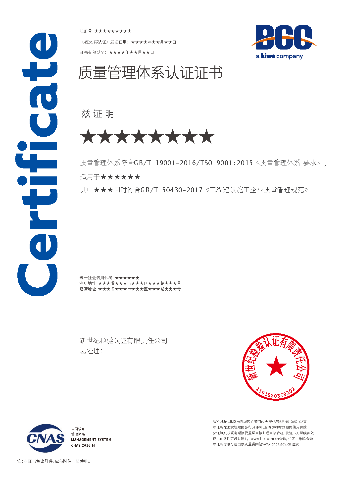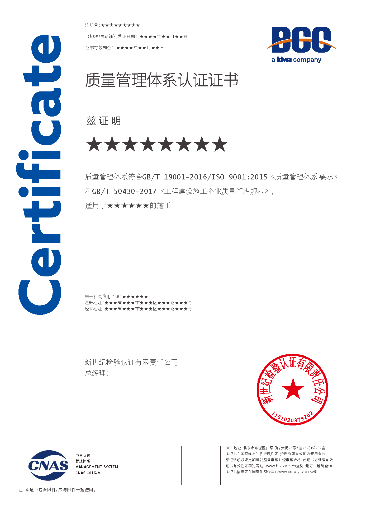 質(zhì)量管理體系證書(shū)(建筑施工50430) 質(zhì)量證書(shū)(一部分是50430) 質(zhì)量管理培訓(xùn)體系證書(shū)