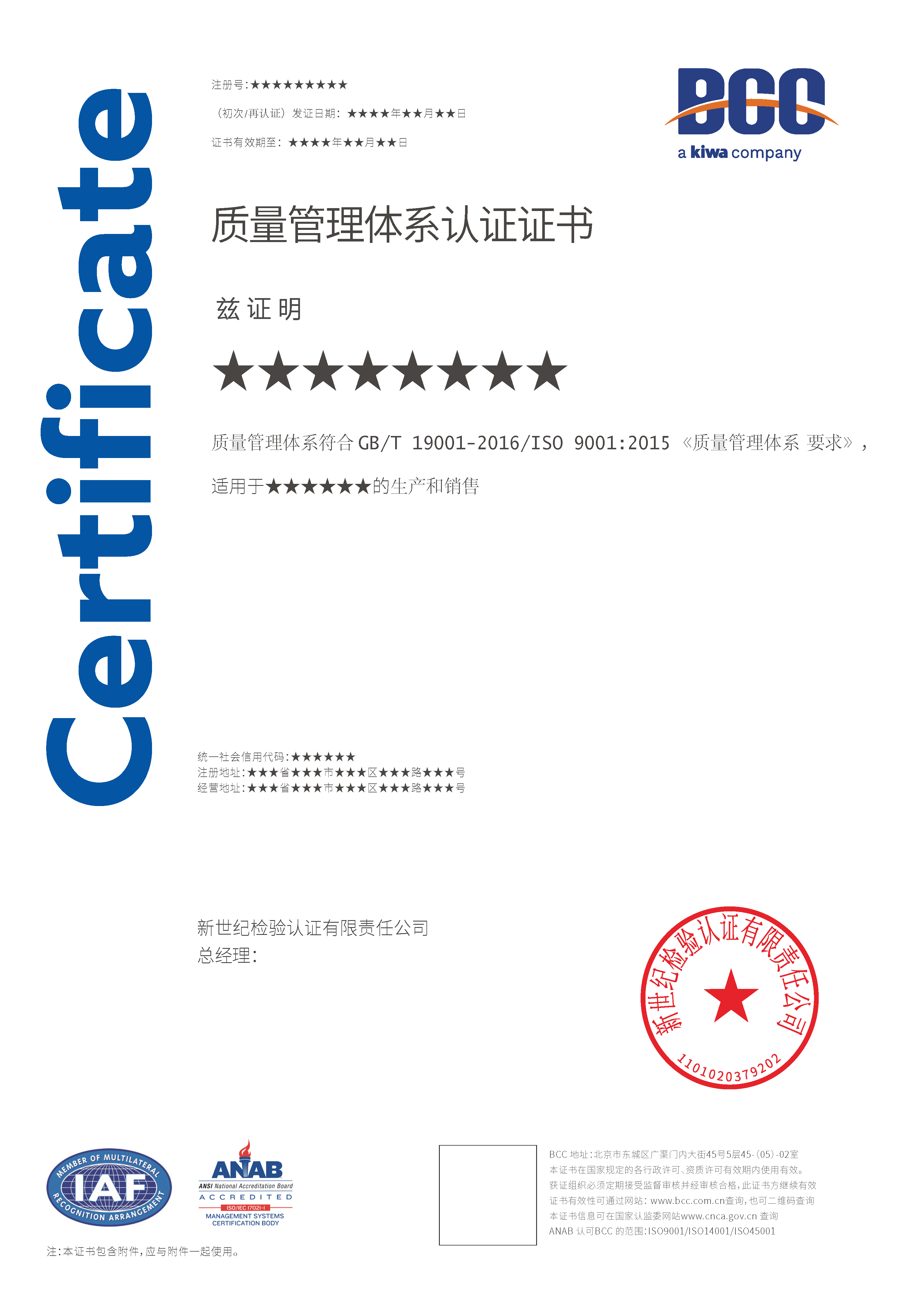 本頁(yè)涉及的認(rèn)證服務(wù)中均有對(duì)應(yīng)的《認(rèn)證實(shí)施規(guī)則》,BCC擁有其最終解釋權(quán)。任何組織及個(gè)人未經(jīng)BCC許可,不得以任何形式全部或部分使用(法律要求除外)認(rèn)證相關(guān)信息。如需獲取相關(guān)實(shí)施規(guī)則請(qǐng)用以下方式聯(lián)系獲?。弘娫?huà):010-58579316   郵箱:fwjs@kiwa.cn