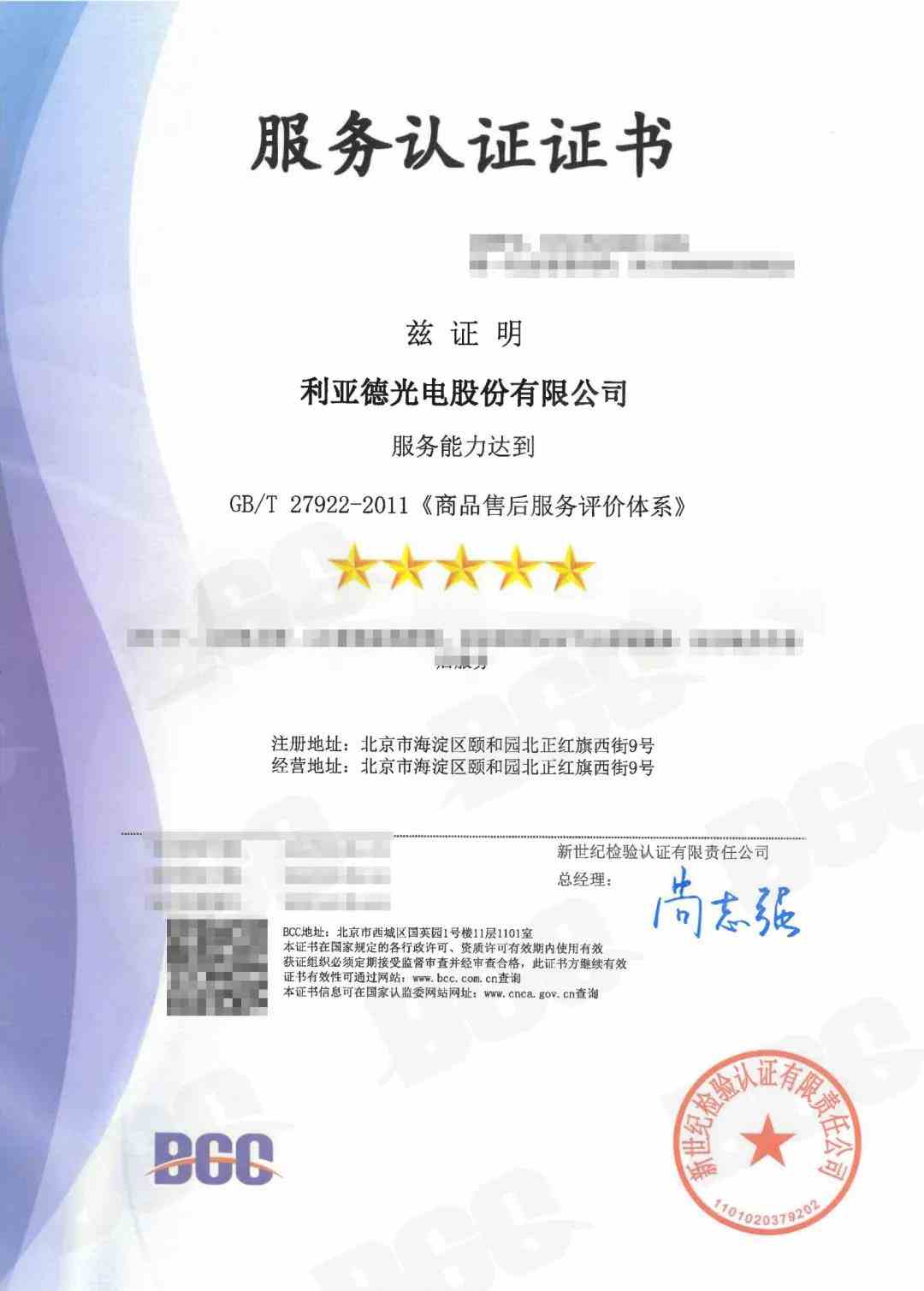 利亞德秉持“高品質(zhì)、優(yōu)服務(wù)、重誠信、盡職責(zé)、服務(wù),一切讓顧客滿意”的經(jīng)營理念,不斷提升企業(yè)的產(chǎn)品質(zhì)量和服務(wù)質(zhì)量,以優(yōu)質(zhì)服務(wù)能力獲BCC頒發(fā)的商品售后服務(wù)認(rèn)證五星證書,為未來進(jìn)軍家電市場的戰(zhàn)略布局奠定了堅(jiān)實(shí)基礎(chǔ)。
