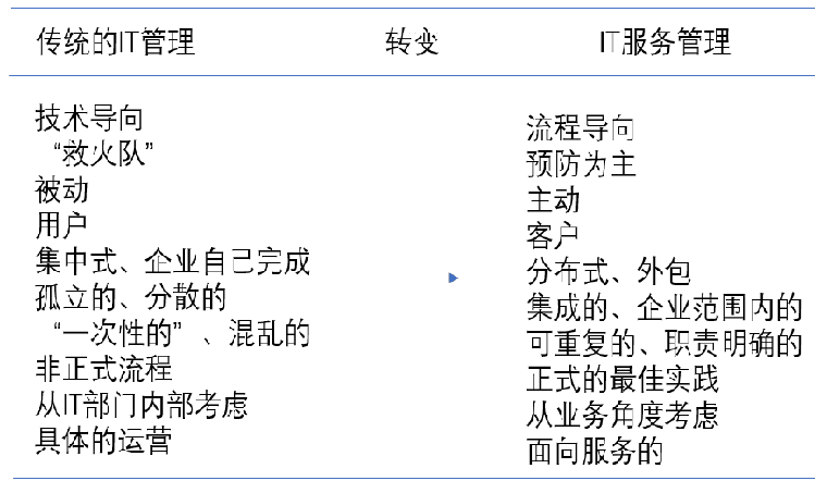 根本出發(fā)點在于通過 IT 服務有力的支持企業(yè)的發(fā)展以及業(yè)務部門業(yè)務的開展,促進企業(yè)競爭力的有效提升。在 IT 管理當中,IT 服務管理屬于不可或缺的構(gòu)成部分。但是IT 服務管理有別于傳統(tǒng)的 IT 管理,其存在的意義在于將基于服務之上的 IT 管理提供給購買 IT 服務的企業(yè)或內(nèi)部部門。